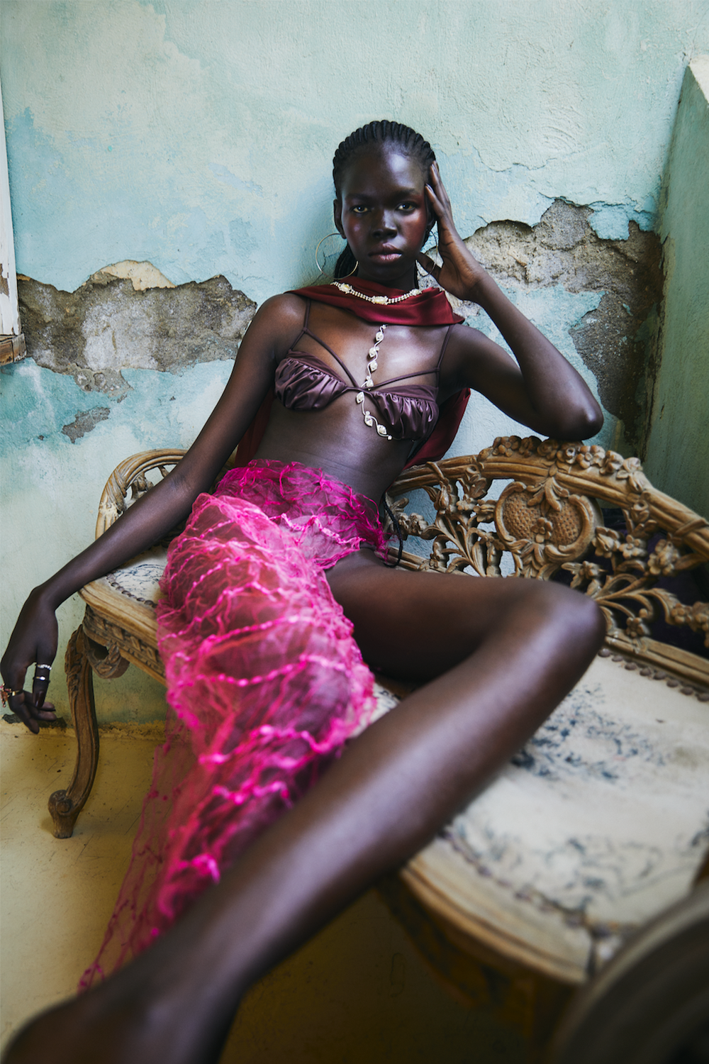 ‘MELKYANA is an ode to the complex but beautiful duality of the Arab woman.’ The name stems from the Arabic words “ملكي أنا” meaning “mine; my own", an invitation for women to unapologetically embrace their unique identity and narrative. Bold rope bikini, one-piece corset with transparencies, satined cut-out top, Malak creates audacious swimwear that can turn into summer wear, for women to transition seamlessly from beach to city, and everywhere in between. ‘The hybridity of the pieces mirrors the woman wearing them, one who walks the line between her rich cultural heritage and her contemporary lifestyle.’ ‘As an Egyptian woman, my personal narrative is deeply intertwined with the experiences and perceptions of Egyptian women. Our society often presents predefined notions of femininity and identity, which can pose challenges for women seeking to express their true selves. But we are seeing the rise of "hybrid women" who are breaking barriers.’ Malak herself is proud to be part of this movement and ‘will continue to claim my space. I am strong, versatile and multifaceted. I am a hybrid woman.’ She is inspired by other like-minded women of which Alya Mooro an Egyptian-British writer, author of “The Greater Freedom”, ‘in which she perfectly describes the Middle Eastern woman outside of stereotypes.’ MELKYANA is Dubai-born and ‘that is something I am very proud of given that I was raised in the UAE. There is a progressive and forward-thinking atmosphere found in the country that plays a role in shaping any brand, Malak says. ‘I don’t believe in cages’, ‘the world is just a game of dancing perspectives’, ‘I am many things’, the launch campaign messages and visuals imagined in collaboration with creative Chantal Brocca translates the essence of MELKYANA. The campaign concept revolves around the question ‘who am I?’ and the shots of the different women are there to answer this. ‘Through their looks, their movements, their actions, they are in total control of their own being. And this is the answer; ‘I am my own’ which translates to ‘I am مِلكي أنا.’